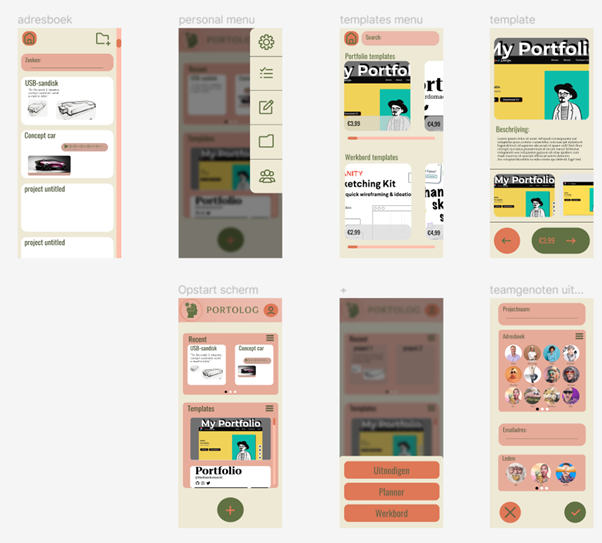 UI design for a digital workspace app that helps create a portfolio.