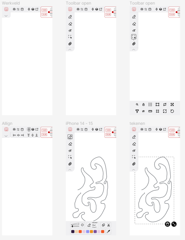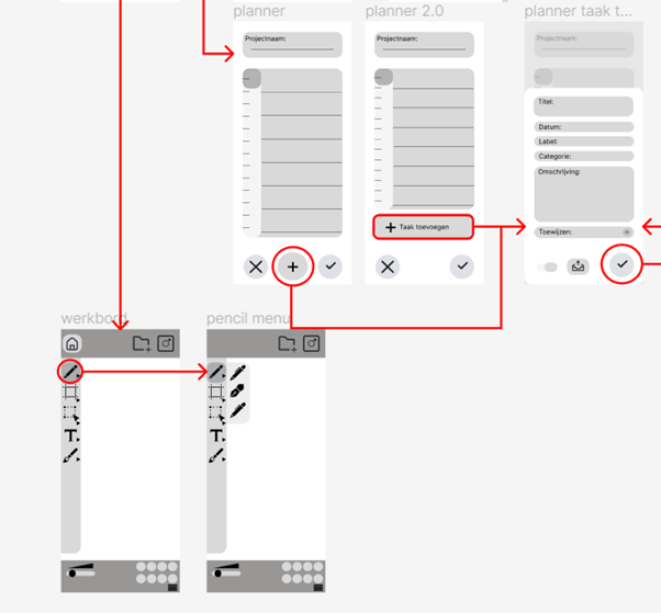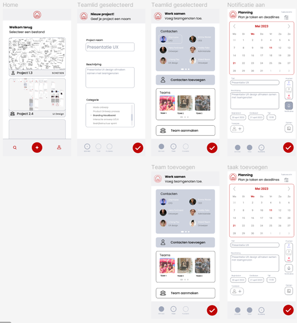 Wireframe: After conducting research I made a wireframe With different iterations to try out what works best for this type of app.